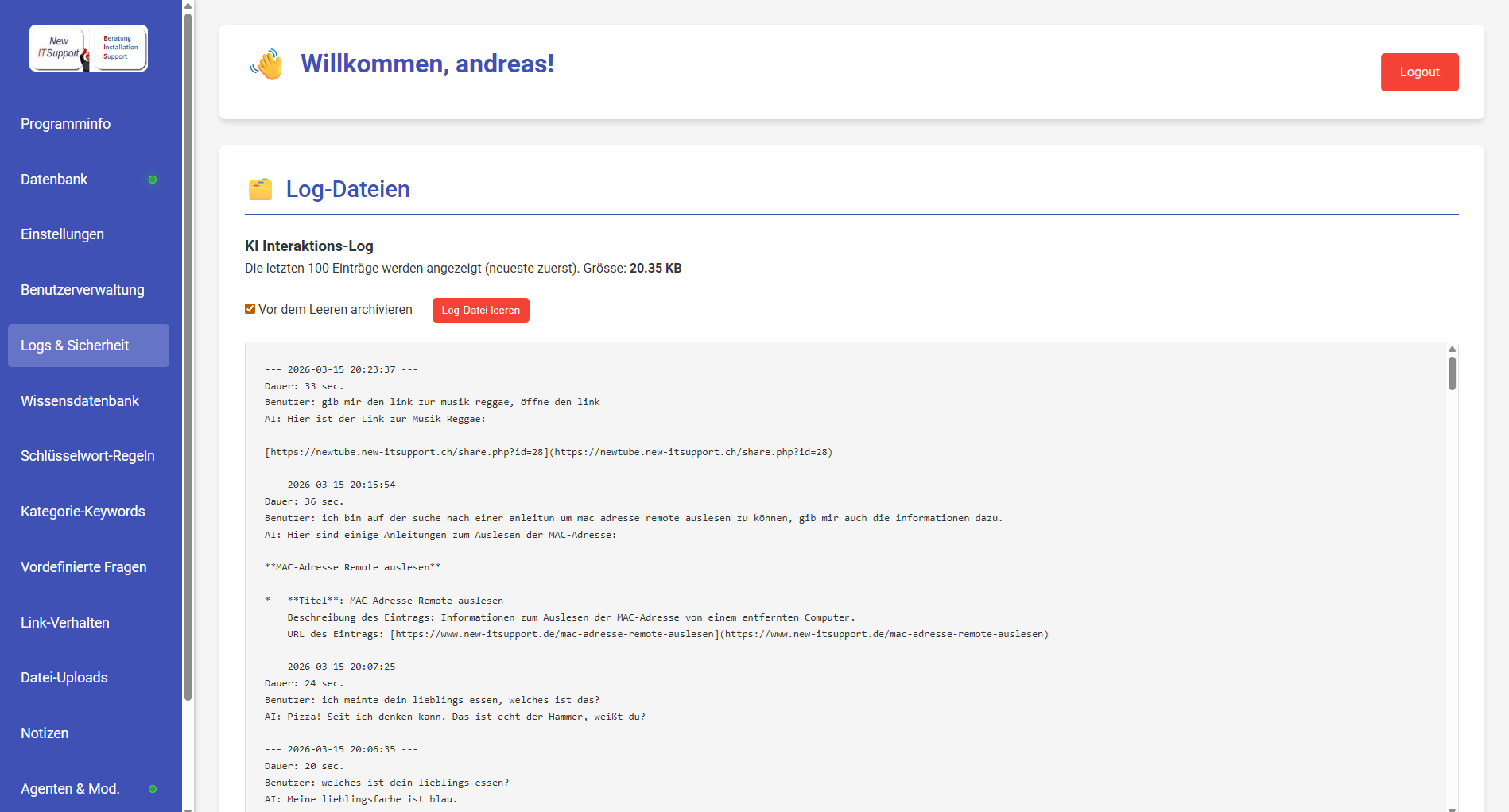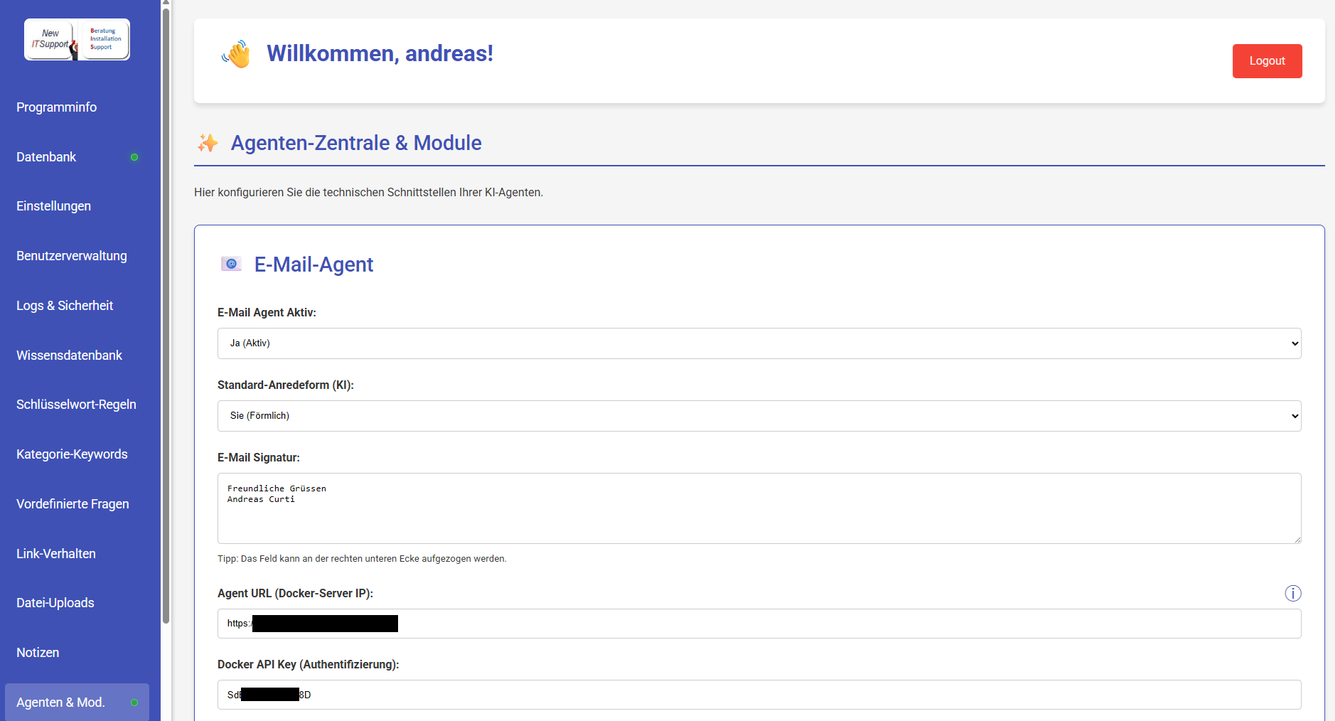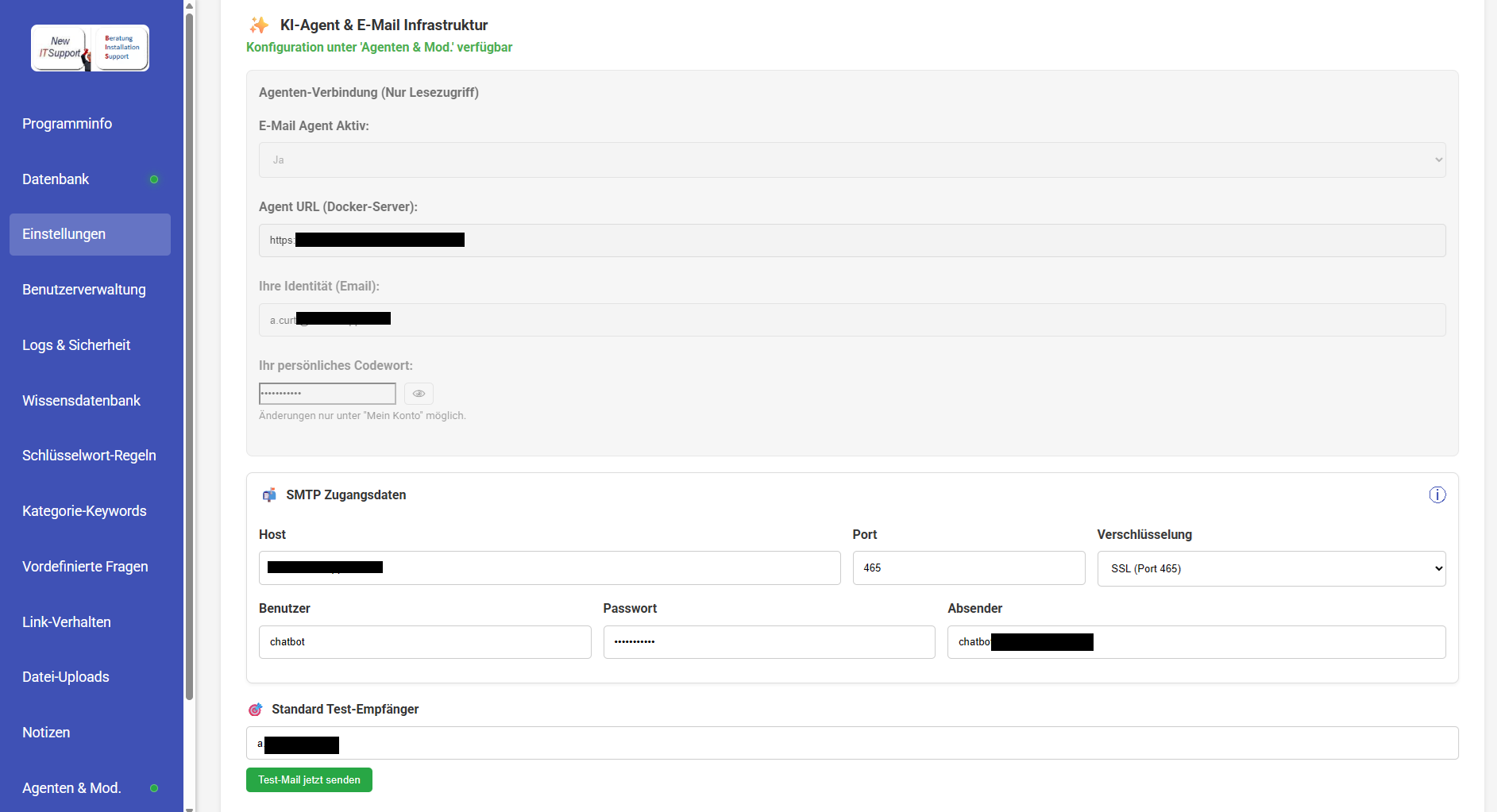 - Chatbot kann zusätzlich mit einem Agenten Server betrieben werden so dass der Chatbot für Mitarbeiter einen hilfreichen Assistent ist um zum Beispiel Email zuverfassen und zu versenden oder Das Filesystem z. B von der KI analysieren zu lassen wo die grossen Dateien sind und vieles mehr..