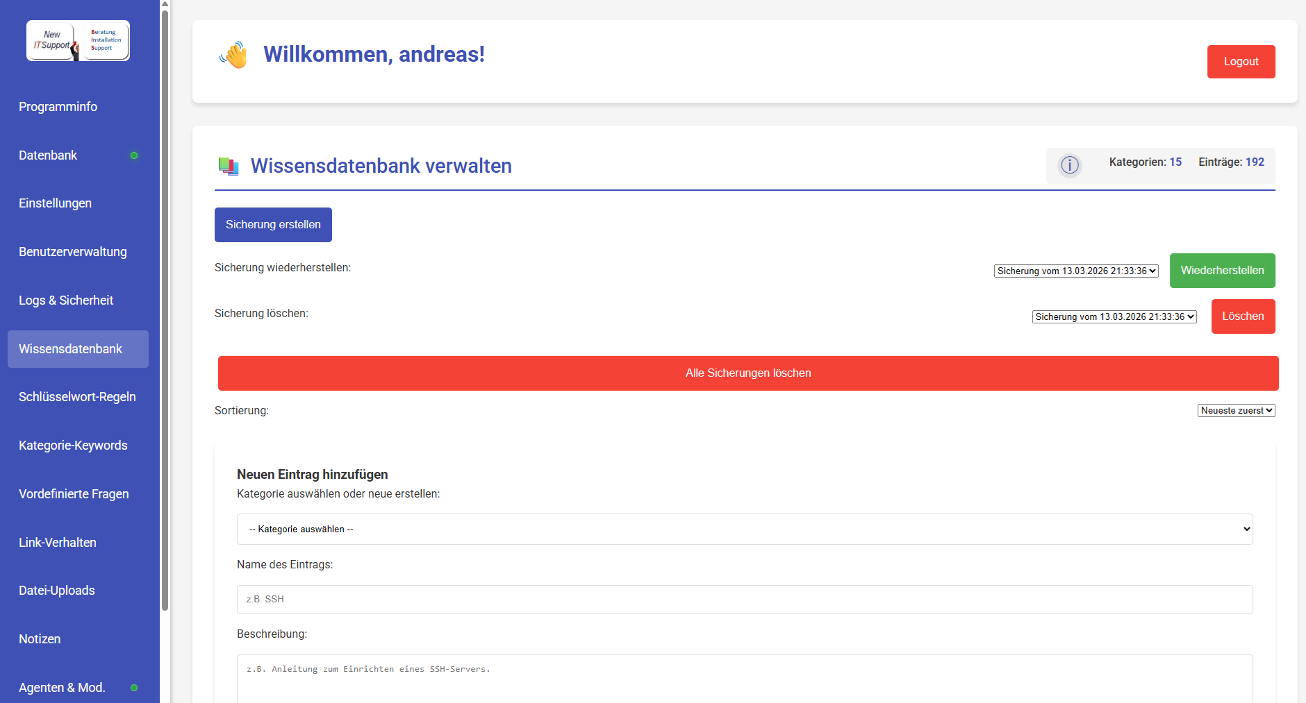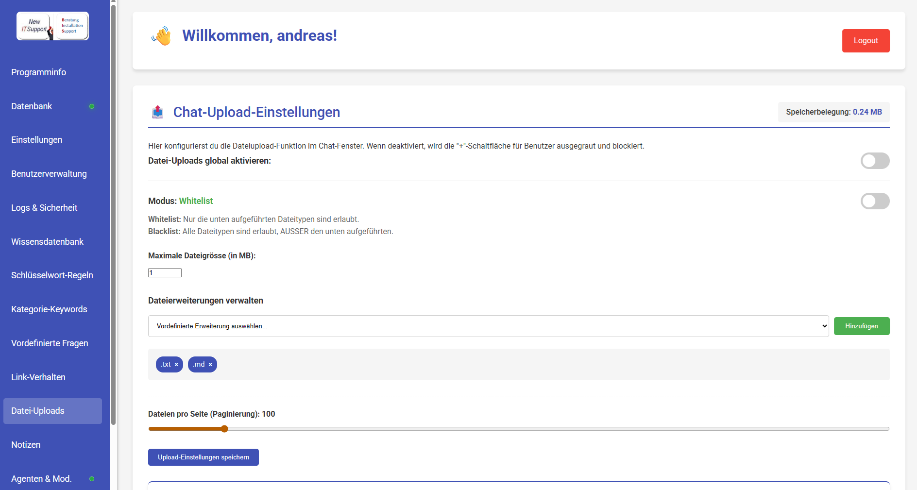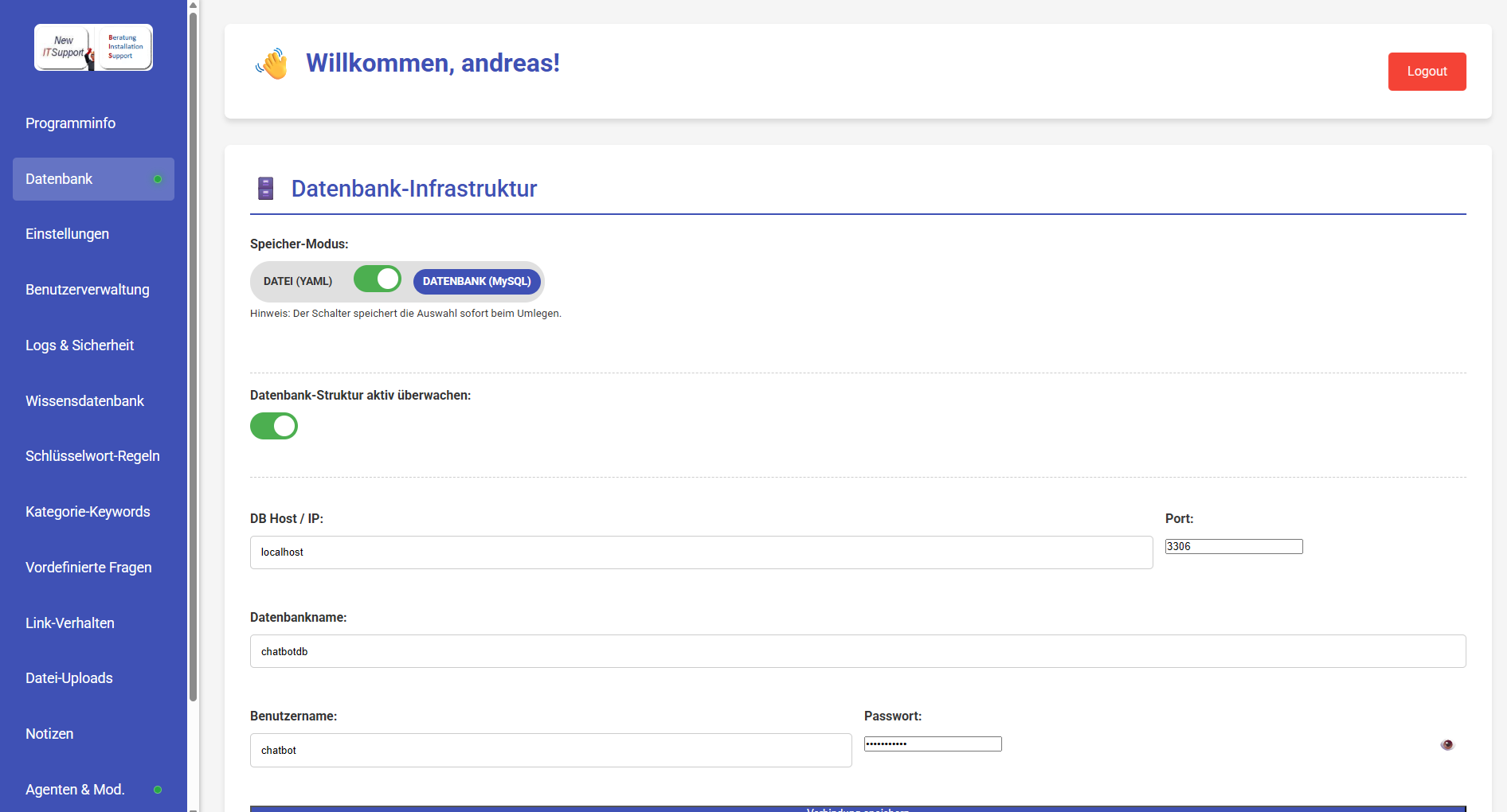 - Chatbot kann zusätzlich mit einem Agenten Server betrieben werden so dass der Chatbot für Mitarbeiter einen hilfreichen Assistent ist um zum Beispiel Email zuverfassen und zu versenden oder Das Filesystem z. B von der KI analysieren zu lassen wo die grossen Dateien sind und vieles mehr..